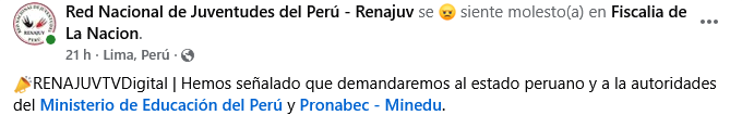 "La conferencia de prensa ha servido solo para dar a conocer algunos aspectos de Beca 18 de cómo se maneja. Es descabellado lo que se hace siendo un gobierno de transición. Los funcionarios no han tomado conciencia que han jugado con las expectativas de los jóvenes", apuntó el dirigente de la Renajuv.