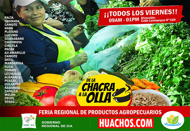 La feria pasa a llamarse Feria Regional de Productos Agropecuarios «De la chacra a la olla», la cual se realizará semanalmente en la calle Lambayeque N°169, centro de Ica, local de la Dirección Regional Agraria, referencia al frente del exterminal de Ormeño.