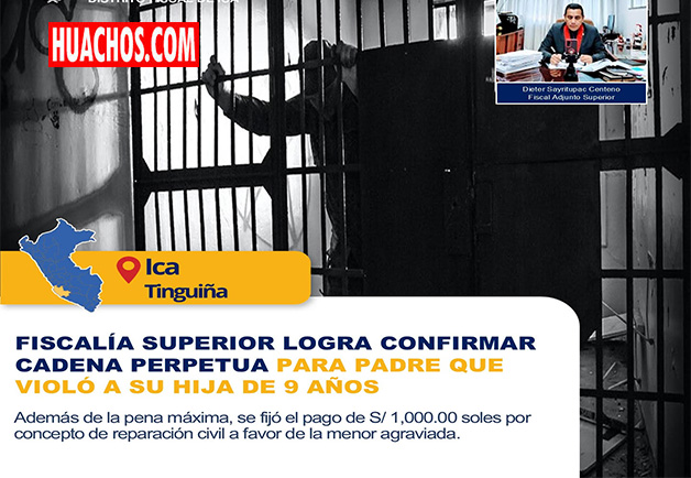 La Segunda Fiscalía Superior Penal Transitoria de Chincha – sede Ica, logró la confirmación de sentencia de cadena perpetua contra Denis Fernando García Farfán por el delito de violación sexual en agravio de una menor de 9 años de edad.