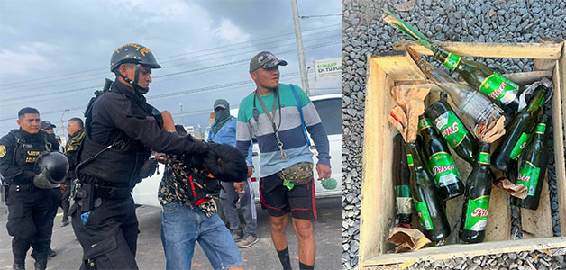 Cerca al lugar de la actuación policial se encontró una caja con ocho botellas de vidrio, cuya boquilla contenía papel (tipo mecha) y emanaba un aroma característico a gasolina. También se encontró un galón con combustible.