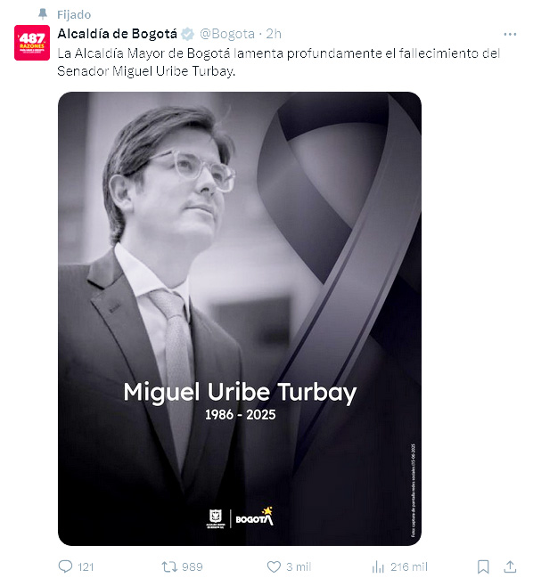 Esposa de Miguel Uribe confirma su deceso